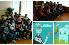 Просмотр видеоролика "Путешествие в страну Стоматологию" в пришкольном лагере "Дружба".