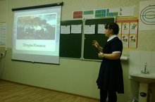 В актовом зале школы состоялась встреча учащихся 5-х классов с Бушковым Александром Петровичем. С 1988 по 2008 год (20 лет) он работал директором школы № 12 («Отличник просвещения», награжден знаком «За заслуги в образовании»). Бушков Александр Петрович, дитя ВОВ, провелпознавательную беседу со школьникамио детях на войне, о том, что такое героизм.