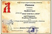 Гайнутдинов Ильназ, ученик 4 класса, призёр муниципального этапа Всероссийской олимпиады