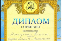 Хуснетдинова Регина, ученица 9 класса, призёр муниципального этапа Всероссийской олимпиады.