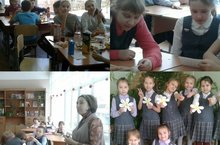 На каникулах ученики 3 класса В вместе с родителями занимаются изготовлением поделок на конкурс "Букет ветерану"