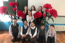 Учащиеся 4в и 11 класса совместно с учителем Лукояновой А.Ф. сделали ростовые гвоздики. Композиции изготовлены из гофрированной бумаги. Данные цветы предназначены для оформления зала к 75- летию Победы.