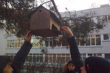 Мальчики на уроках труда изготовили кормушки, которые они повесили на деревья вокруг школы.