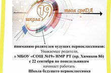 Уважаемые родители, в МБОУ «СОШ №19» НМР РТ (пр. Химиков 8б) 19 марта в 18:00 состоится собрание для родителей с классным руководителем.