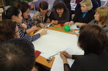 В ходе проблемно-деловой игры педагоги составили профессиональный портрет современного учителя. В ходе коллективного обсуждения было выявлено представление педагогов школы о понятии учитель – профессионал. Члены рабочих групп результаты своей деятельности сравнили с аттестационными требованиями и предложенными научными подходами, выявили насколько «коллективный портрет» учителя-профессионала соответствует портрету «нормативному» и «научному».