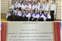 13 февраля взвод 4Б класса школы №19 занял 2 место на зональном этапе районного смотра-конкурса строя и песни, посвящённого 70-летию Великой Победы и Дню защитников Отечества, который прошел в школе №33. На этом этапе соревновались взводы начальных классов школ №1, 2, 3, 6, 8, 14, 19, 33.