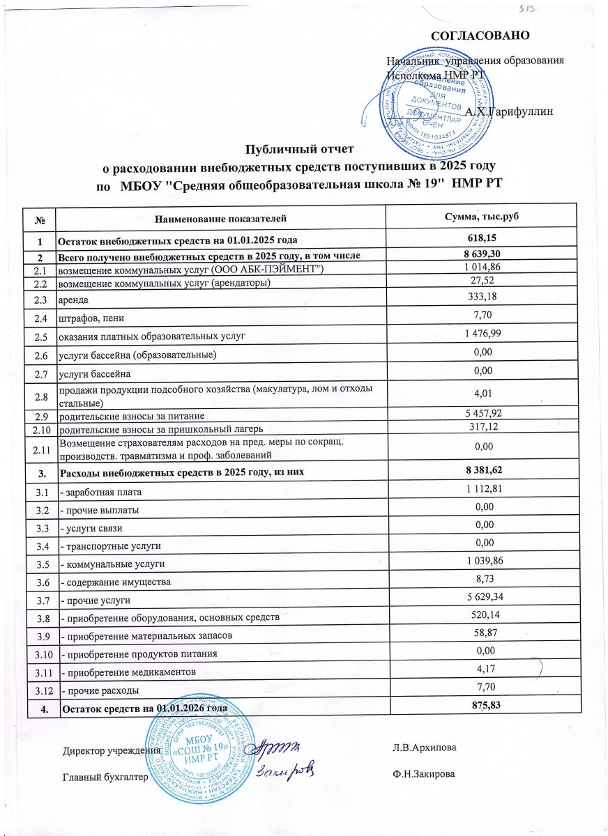 Публичный отчет о расходовании внебюджетных средств поступивших в 2025 году