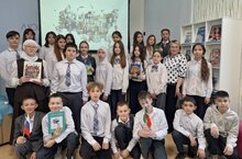 Учащиеся 6а класса на мероприятии в библиотеке «Апуш». Тема: " В единстве народов -наша сила"