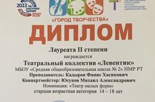 Школьный театр стал лауреатом II степени V Открытого Республиканского конкурса «Город творчества». Поздравляем! Театр – большая эмоциональная школа. Есть в театральном искусстве что-то магическое, дарящее особую атмосферу радости, счастья. Театр для детей источник позитивных эмоций, он воспитывает добрых, честных, духовных и душевных, красивых и неравнодушных людей. Это ли не чудо!