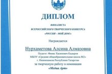 Финалист Всероссийского творческого конкурса «Россия – мой дом!» , посвященный Году памяти и славы в Российской Федерации 04.11.2020