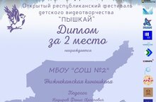 Подведены итоги VI Открытого республиканского фестиваля детского видеотворчества «Пышкай» (в переводе с коми - «Воробей») г. Сыктывкар. Нижнекамская киношкола удостоилась почётного 2 места. Спасибо "Пышкаю" за высокую оценку нашего творчества! Спасибо родителям, педагогам и друзьям!