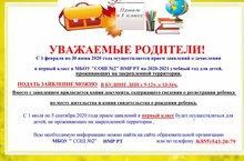 С 1 июля по 5 сентября 2020 прием заявлений о зачислении в первый класс будет осуществляться для детей, не проживающих на закреплённой территории.