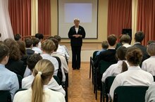 Татьяна Адиславовна Куприянова, директор ГАПОУ "Нижнекамский политехнический колледж имени Е.Н.Королёва", депутат Нижнекамского Городского совета и студенты Политехнического колледжа выступили перед учащимися 8-11 классов нашей школы. Рассказали о Герое Социалистического труда, заслуженном строителе Татарской АССР Евгение Никифоровиче Королёве. -