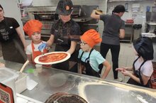 .Да, да, и готовили они в настоящей пиццерии, на настоящей кухне. Кстати, может вы подумали, что пиццу, которую готовили первоклассники, отдали заказчикам - разумеется никому ее не отдали, они съели ее сами!