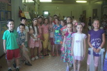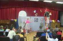 В гостях в пришкольном лагере побывал театр "Веселая компания"с кукольным спектаклем "Дедушкина медаль".