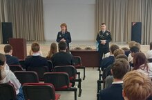 В "МБОУ СОШ 21" 15 апреля 2025 года в рамках профориентации состоялась встреча обучающихся 8классов с представителями Елабужского Суворовского военного училища МВД России.