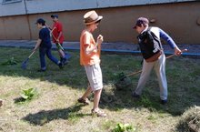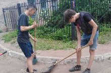 Сбор скошенной травы, полив клумб, облагораживание территории школы - ежедневная работа ЛТО