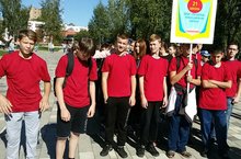 Девочки 9 классов ДОО "Лидер" принимали участие в городском параде,посвященном юбилею НКНХ