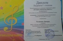 Поздравляем Талипову Динару и Кузнецову Валентину Сергеевну, с 1 местом в республиканском конкурсе творческих работ"Музыкальная палитра", Богданову Настю и Сайфуллину Аделю со 2 местом в этом конкурсе. Молодцы!