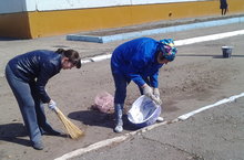 Продолжается акция "Чистый двор". Учащиеся школы облагораживают школьную территорию и близлежащие дорожки, ведущие к школе.