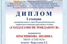 Ученицы 2Б класса Красникова Полина и Ибатуллина Ралина приняли участие в муниципальном этапе III Республиканского творческого конкурса рисунков и чтецов «Солдатами не рождаются».