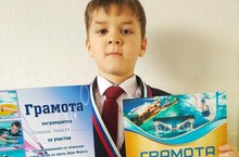 Ученик 2Б класса Проказов Никита учится этому виду спорта усердно, не пропуская ни одной тренировки. Грамота за участие в плавание на приз «Деда Мороза» — его первая награда.