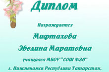 Муниципальное бюджетное общеобразовательное учреждение «Средняя общеобразовательная школа №26 с углубленным изучением отдельных предметов» Нижнекамского муниципального района Республики Татарстан / Татарстан Республикасы Түбән Кама муниципаль районының «26нчы урта гомуми белем бирү мәктәбе» муниципаль бюджет гомуми белем бирү учреждениесе
