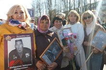 Идут ряды Бессмертного полка.Учителя и ученики 26 школы участвовали в акции "Бессмертный полк".