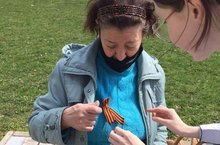 В предверии 9 мая учащиеся 7В класса приняли участие в Акции «Георгиевская ленточка» , раздавали по проспекту Мира всем желающим.