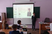 В рамках месячника военно-патриотического воспитания в 5 В классе прошёл классный час "Герои Отечества". Ребята рассказали о своих дедушках-героях. Так, Шернина Надя рассказала о дедушке, ушедшем на фронт в первые дни войны и героически погибшем в 1943 году. Коробейников Ярослав о дедушке, участнике боевых действий в Афганистане и участнике ликвидации последствий на Чернобыльской АЭС.