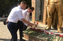 Руководитель отряда Данил Николаевич с Юноармейцами возложили цветы на памятнике в поселке Красный ключ.