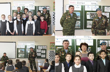 На классный час "С детства мечтаю стать солдатом" в гости, к 4В классу, пришли воины-интернационалисты: Кошкин Н.М. и Новосёлов А.М.