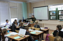 Ученики 2 Б класса пригласили в гости на классный час младшего сержанта роты Почётного караула 154 отдельного коменданского Преображенского полка.