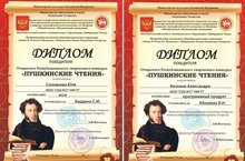 Поздравляем победителей I Всероссийского открытого творческого конкурса "Пушкинские чтения" в городе Набережные Челны, Соловьёву Юлию, 11В класс (науч. руководитель Бардина С.М.) и Кочкину Александру, 10А класс (науч. руководитель Абизяева В.Н.) и желаем дальнейших побед и успехов! Молодцы!