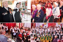 Большим праздничным концертом сегодня поздравили ученики и учителя школы наших ветеранов с наступающим Днём Победы. Со сцены прозвучали песни, стихи военных лет, звучали тёплые поздравления ветеранам, исполнялись зажигательные танцы для гостей праздника. Первоклассники подарили ветеранам гвоздики и бумажных голубей с пожеланиями мира и здоровья. После концерта ветеранов ждал вкусный праздничный обед.