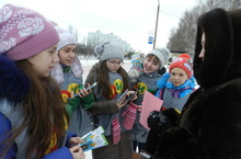 25.12.13 участники антинаркотического проекта «Самостоятельные дети» провели акцию «В Новый год – по безопасным дорогам» на улице Менделеева.