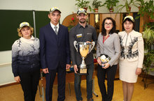 Сегодня нашу школу посетил Тимур Ренатович Тимерзянов — российский автогонщик, заслуженный мастер спорта, 3-кратный чемпион Европы по ралли-кроссу (2010, 2012, 2013 года), обладатель кубка России по зимним трековым гонкам 2014 года, 4-кратный чемпион Татарстана по зимним трековым гонкам (2008, 2010, 2011, 2014). С 2014 года участвует в чемпионате мира по ралли-кроссу, где является единственным постоянным представителем из России. Гонщик из Татарстана Тимур Тимерзянов попал в десятку лучших по итогам этапа чемпионата мира по ралли-кроссу в Великобритании. Для российского автогонщика Тимура Тимерзянова, выступающего в составе австрийской команды STARD, бельгийский этап Чемпионата мира по ралли-кроссу закончился довольно удачно. За счет правильной тактики российскому пилоту удалось попасть в полуфинал и набрать новые очки. Тимур Ренатович приехал к нам в школу с подарками: все учащиеся 9Б класса получили бейсболки, календари и плакаты с автографом знаменитого гонщика. Мы благодарим администрацию АО «ТАНЕКО» за предоставленную возможность встретиться с Тимуром Тимерзяновым, посидеть за рулем его крутого автомобиля. Дети были в восторге от встречи и пожелали гонщику только ярких побед!