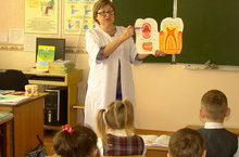 Хорошее состояние зубов – это результат правильного ухода и гигиены полости рта. Каждый из нас мечтает о красивой «голливудской» улыбке, но, к сожалению, вынуждены констатировать, что встретить ее можно далеко не у каждого. Причина этому – игнорирование элементарных правил гигиены полости рта и регулярный уход за зубами. Гигиена полости рта давно стала обязательным компонентом культуры человека. Регулярная и правильная гигиена полости рта на 90% обеспечивает здоровье зубов. Сегодня в нашей школе гигиенист стоматологической поликлиники Тимофеева Галина Николаевна провела интересную лекцию учащимся 1-4 классов.