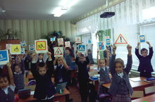 На мероприятие явился господин Светофор, подарил учащимся таблички дорожных знаков и рассказал детям, как важно знать и соблюдать Правила дорожного движения, привел статистику детского травматизма на дорогах.