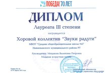 ПОЗДРАВЛЯЕМ МЕЩАНОВУ ВАЛЕНТИНУ ПЕТРОВНУ И ХОРОВОЙ КОЛЛЕКТИВ "ЗВУКИ РАДУГИ", ЗАНЯВШИЕ 3 МЕСТО В ДЕТСКОМ ВОКАЛЬНО - ХОРОВОМ КОНКУРСЕ "СЕРЕБРЯНЫЙ КОЛОКОЛЬЧИК", ПОСВЯЩЕННЫЙ 70 - ЛЕТИЮ ПОБЕДЫ В ВЕЛИКОЙ ОТЕЧЕСТВЕННОЙ ВОЙНЕ!!!