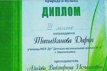 Топычканова Дарья заняла 3 место во II Республиканском конкурсе презентаций "Природа и музыка"