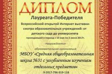 Наша школа стала победителем во Всероссийской Интернет выставки-смотра образовательных учреждений: от детского сада до университета, которая проходила в период с 10 мая по 2 июня 2017 года!