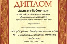 МБОУ "СОШ №31" награждена ДИПЛОМОМ ЛАУРЕАТА-ПОБЕДИТЕЛЯ Всероссийского Фестиваля - выставки образовательных учреждений проходившей в период с 15 июня по 7 июля 2017 года под чутким руководством директора школы Габдуллахатова И.А.!