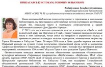 С 2015 года наша школьная библиотека сотрудничает с Домом Дружбы Народов. О совместно проведенных за это время мероприятиях можно прочитать в 12-м номере электронного журнала “Образование Нижнекамского муниципального района” в статье “Прикасаясь к истокам, говорим о высоком” заведующей библиотекой СОШ № 33 Хабибуллиной З.М.