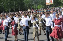 Красивые пары юношей и девушек школы №6 приняли участие в акции "Вальс Победы" в рамках торжественных мероприятий на Параде-2023.
