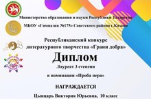 Поздравляем Гилязеву Аделину и Цынцарь Викторию, награжденных дипломами лауреатов III степени Республиканского конкурса литературного творчества "Грани добра" (учитель Сергеева Ирина Юрьевна).
