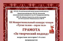Поздравляем обучающуюся нашей школы Рахматуллину Амину, награждённую грамотой "За творческий подход" XII Межрегионального конкурса чтецов "Туган телем - серле тел" (учитель Сахабиева Аниса Равхатовна).