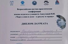 Наши обучающиеся приняли участие во Всероссийской научно-практической конференции имени педагога-гуманиста Ащеуловой В.И. "Через слово и дело к разуму и сердцу": дипломами лауреата награждены Насибуллина Самира (6А) (руководитель Зиганшина Венера Гависовна) и Иванова Юлия (9А) (руководитель Дорофеева Лилия Ильинична), дипломом III степени - Дорофеева Полина (10А) (руководитель Дорофеева Лилия Ильинична).