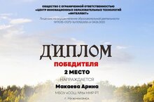 Поздравляем обучающуюся 8Б класса Макаеву Арину, награждённую Дипломом II степени Республиканского творческого конкурса "Моя малая Родина" в номинации "Творческая мастерская" (учитель родного языка и литературы Зиганшина Венера Гависовна).