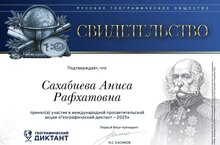 Учитель географии Сахабиева Аниса Рафхатовна приняла участие в Международной просветительской акции "Географический диктант".